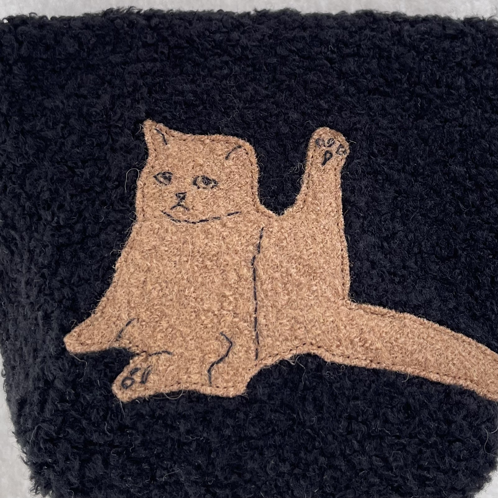 刺繍とアップリケで描く猫の姿は、どれも少し不思議で、どこかユーモラス。