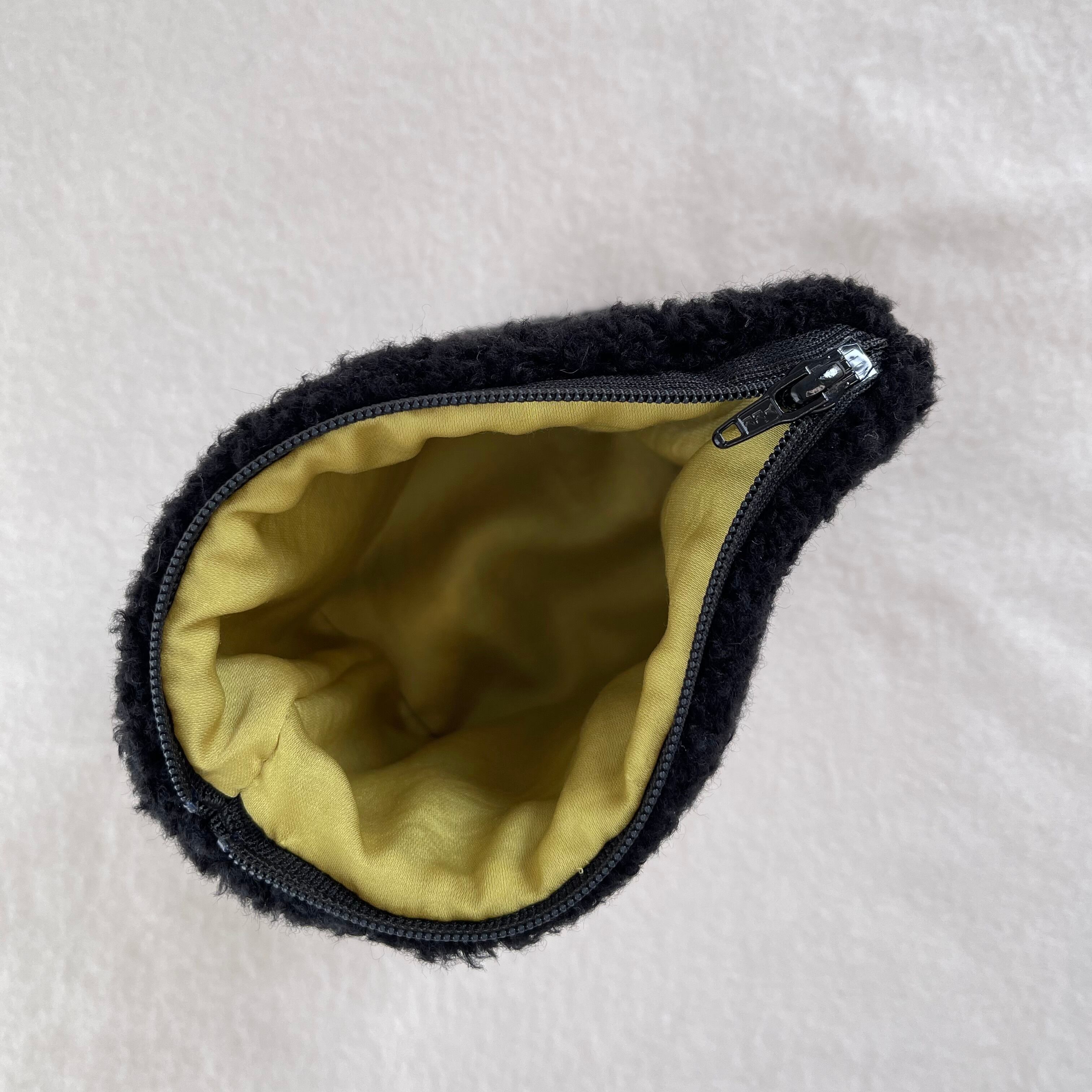 手のひらにすっぽり収まるサイズのミニポーチは、ライムイエローが映える裏地付きでしっかりとした作り。