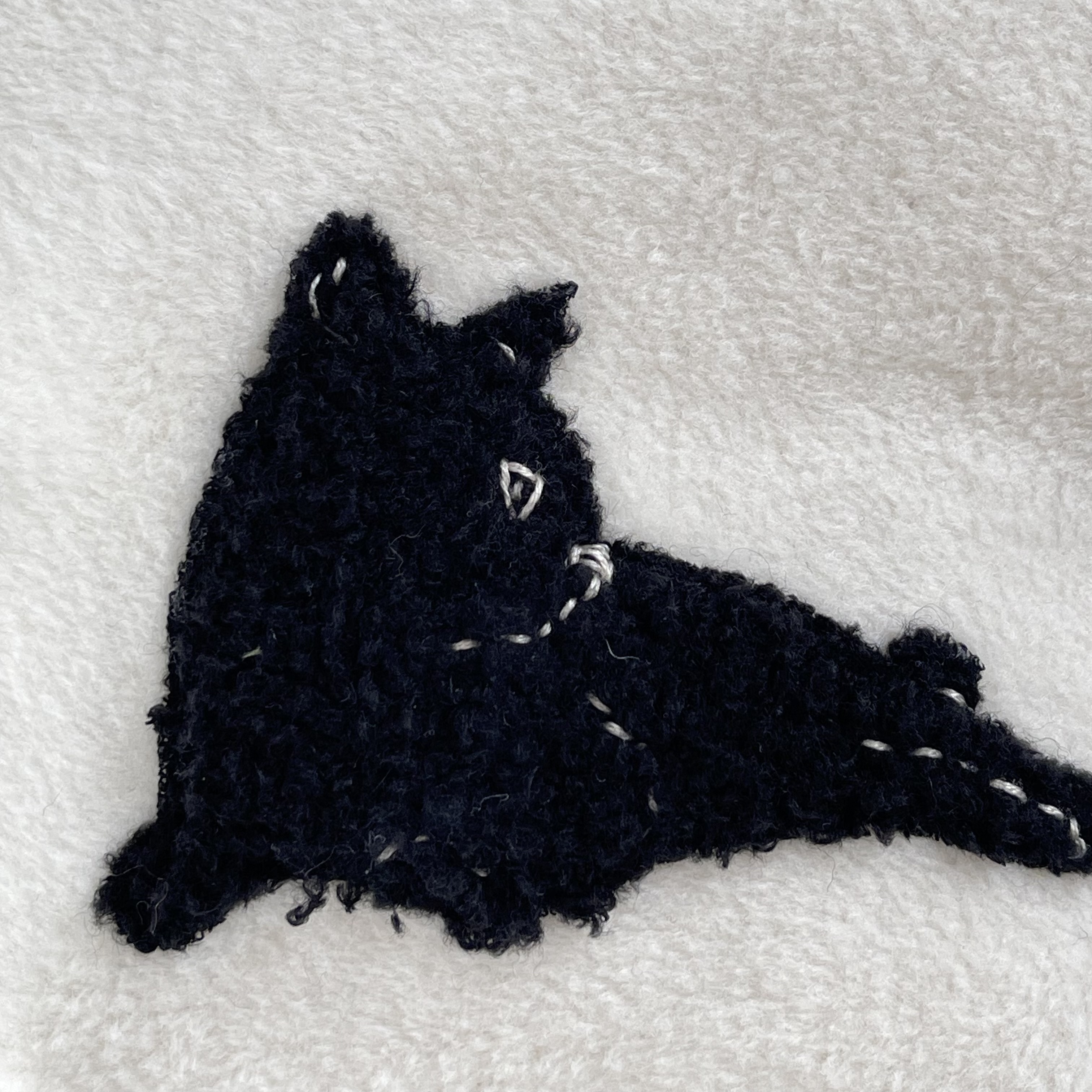 刺繍とアップリケで描く猫の姿は、どれも少し不思議で、どこかユーモラス。