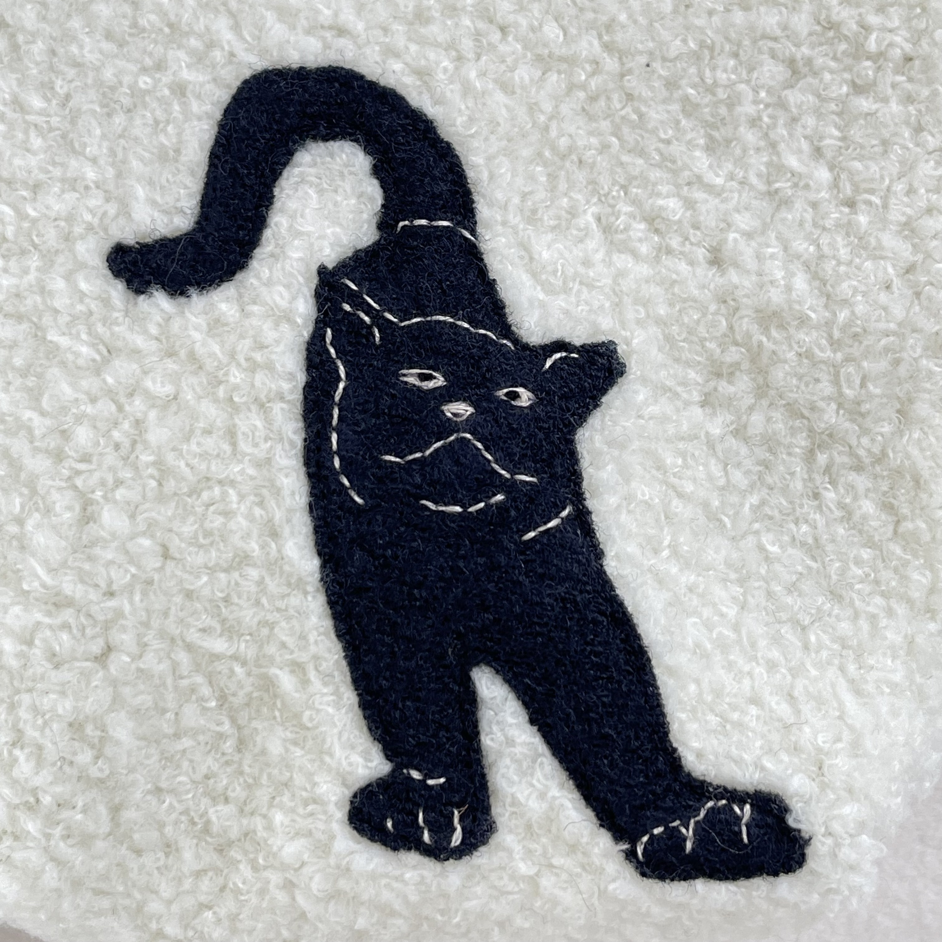 刺繍とアップリケで描く猫の姿は、どれも少し不思議で、どこかユーモラス。
