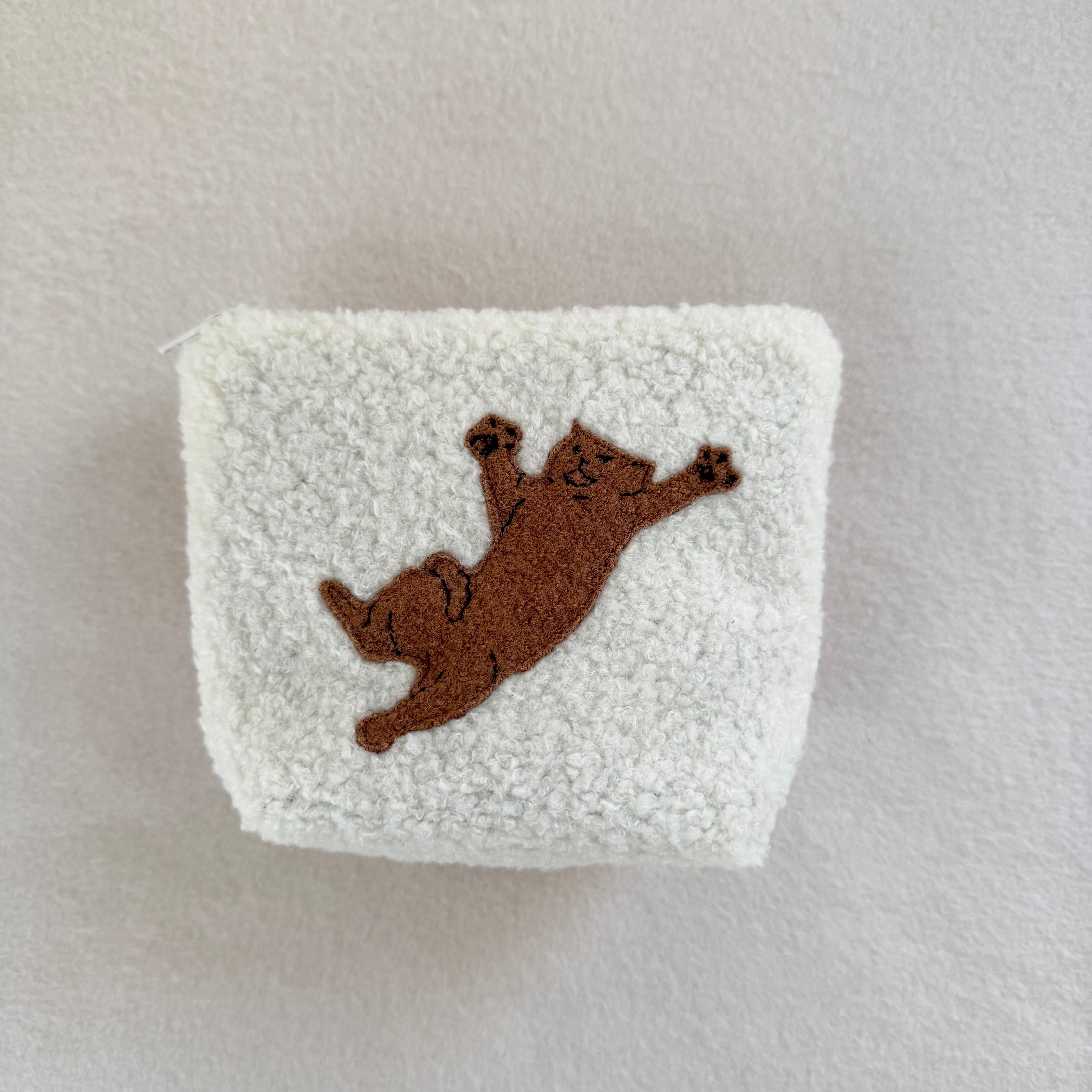 CAT pouch /キャットポーチは、そんな「普通じゃないけど、最高に猫らしい」ポーズを厳選し、布のアップリケと刺繍で丁寧に再現しました。