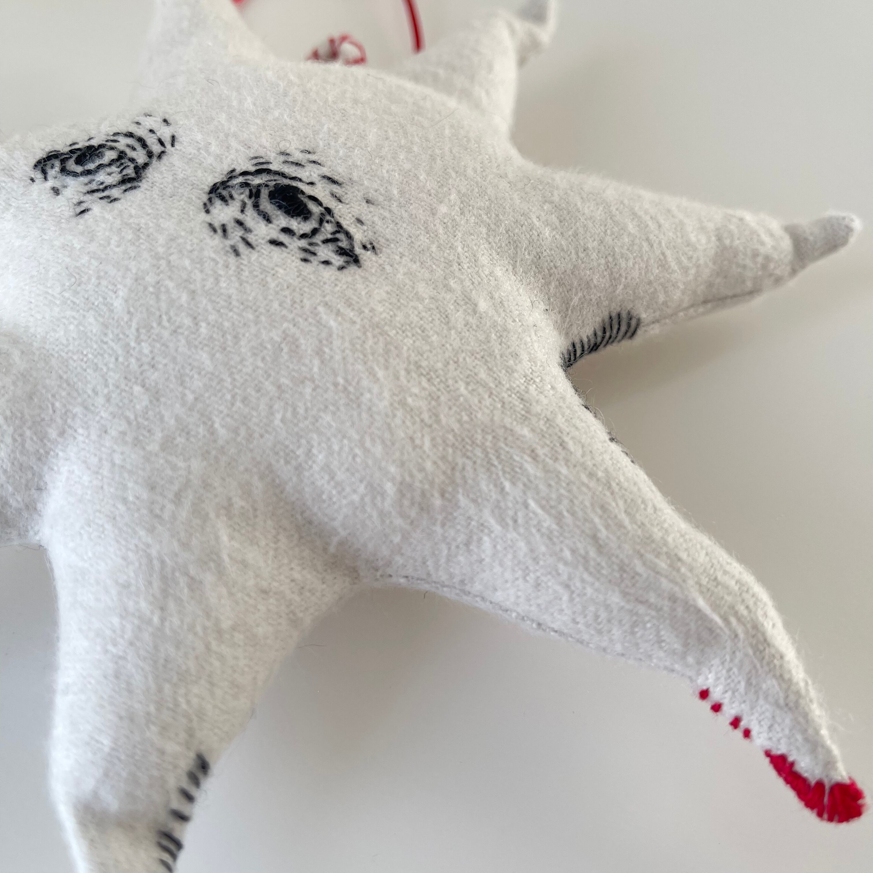 瞳の刺繍が印象的なこのアイテムは猫のおもちゃとしても楽しめるチャームです。